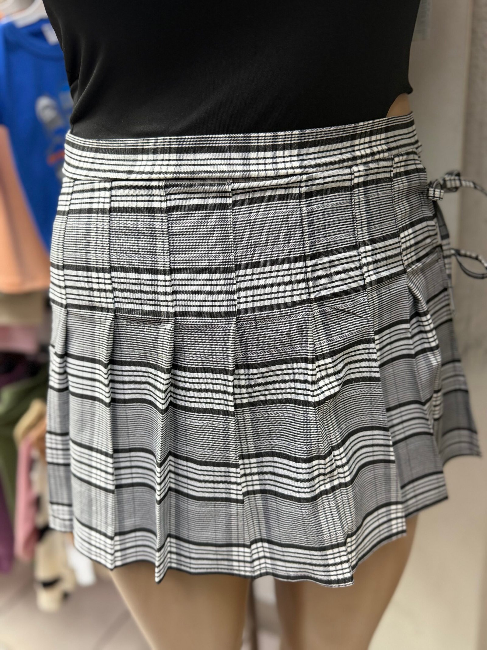 Short pollera tableada con cierre en la parte de atrás