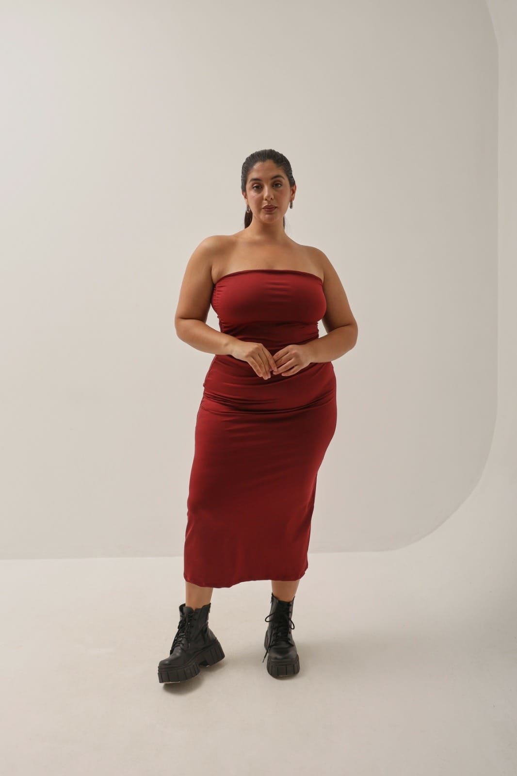 Vestido de lycra straple tres cuarto