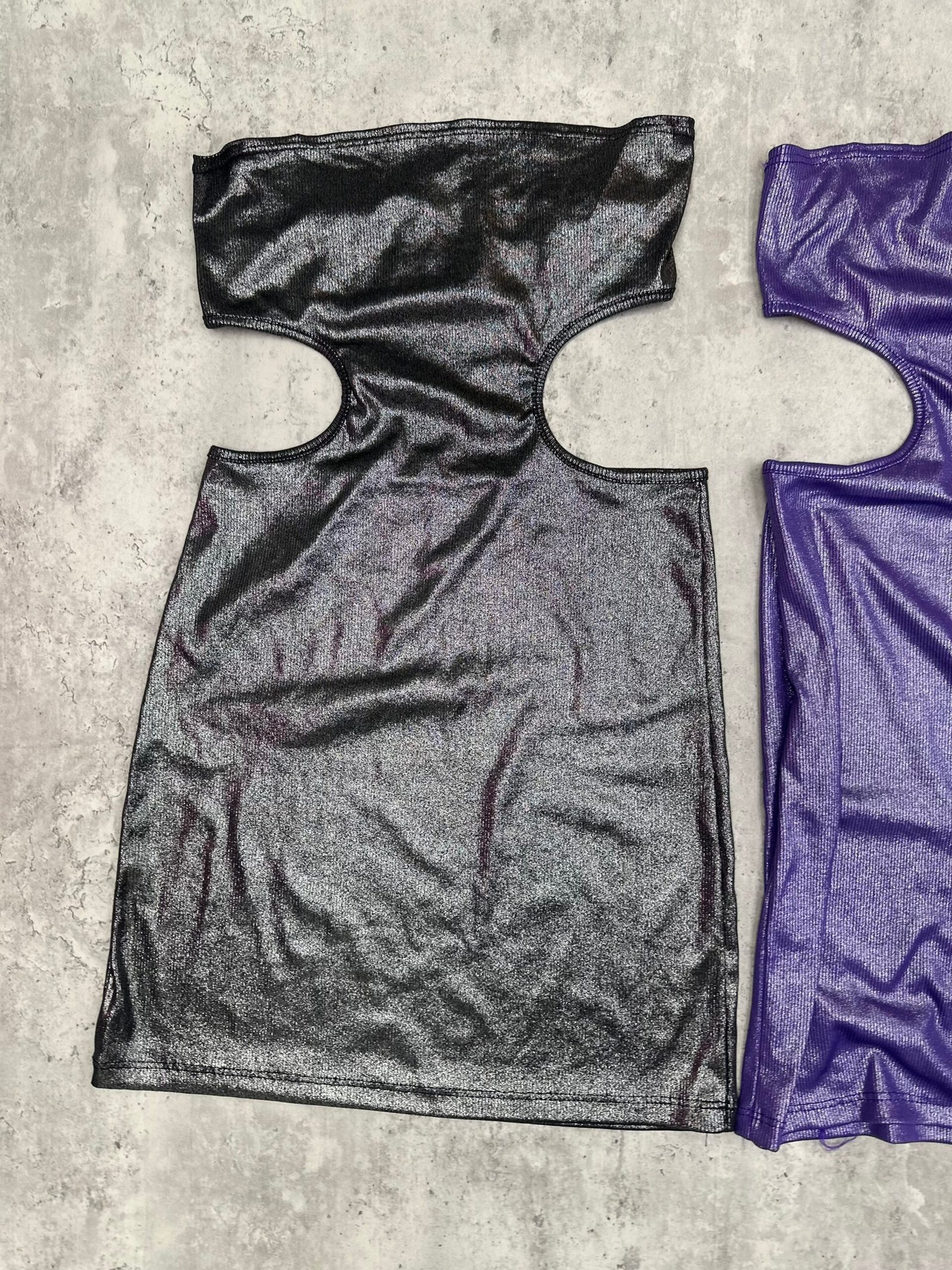 Vestido straple brillo con aberturas de costado
